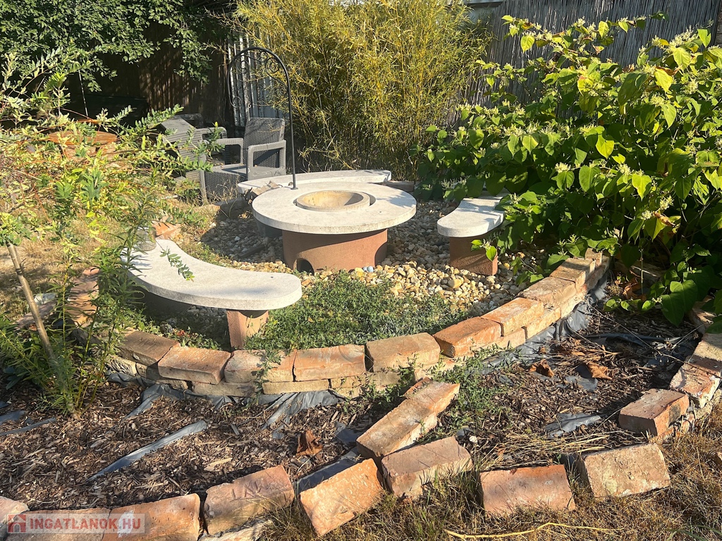 - Az udvar különlegessége a terasz előtt kialakított aranyhalakkal telepített kerti tó