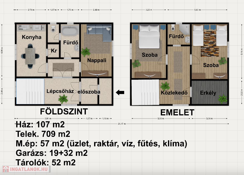 - A melléképület mellett található még egy 19 m2-es, klímával felszerelt, szerelőaknás, hőszigetelt garázs és egy különálló 9,4 m hosszú, 32 m2-es garázs, ami teherautók tárolására is alkalmas