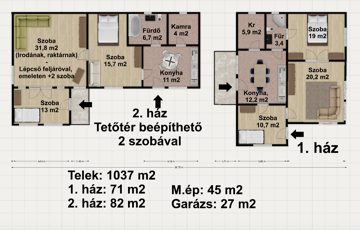 - Az 2.épület tovább bővíthető az emeleti szobákkal, akár lakás, akár iroda használat miatt