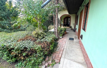 - Az udvar gyönyörű, zöld növényekkel, óriás fákkal tarkított